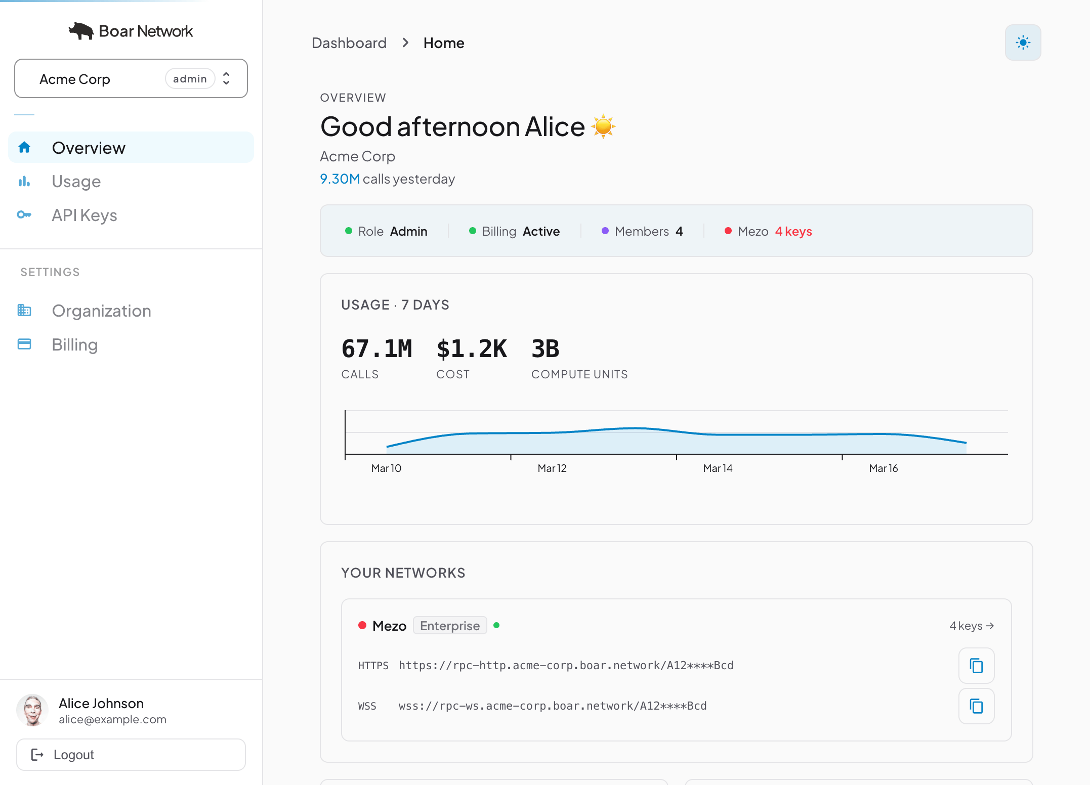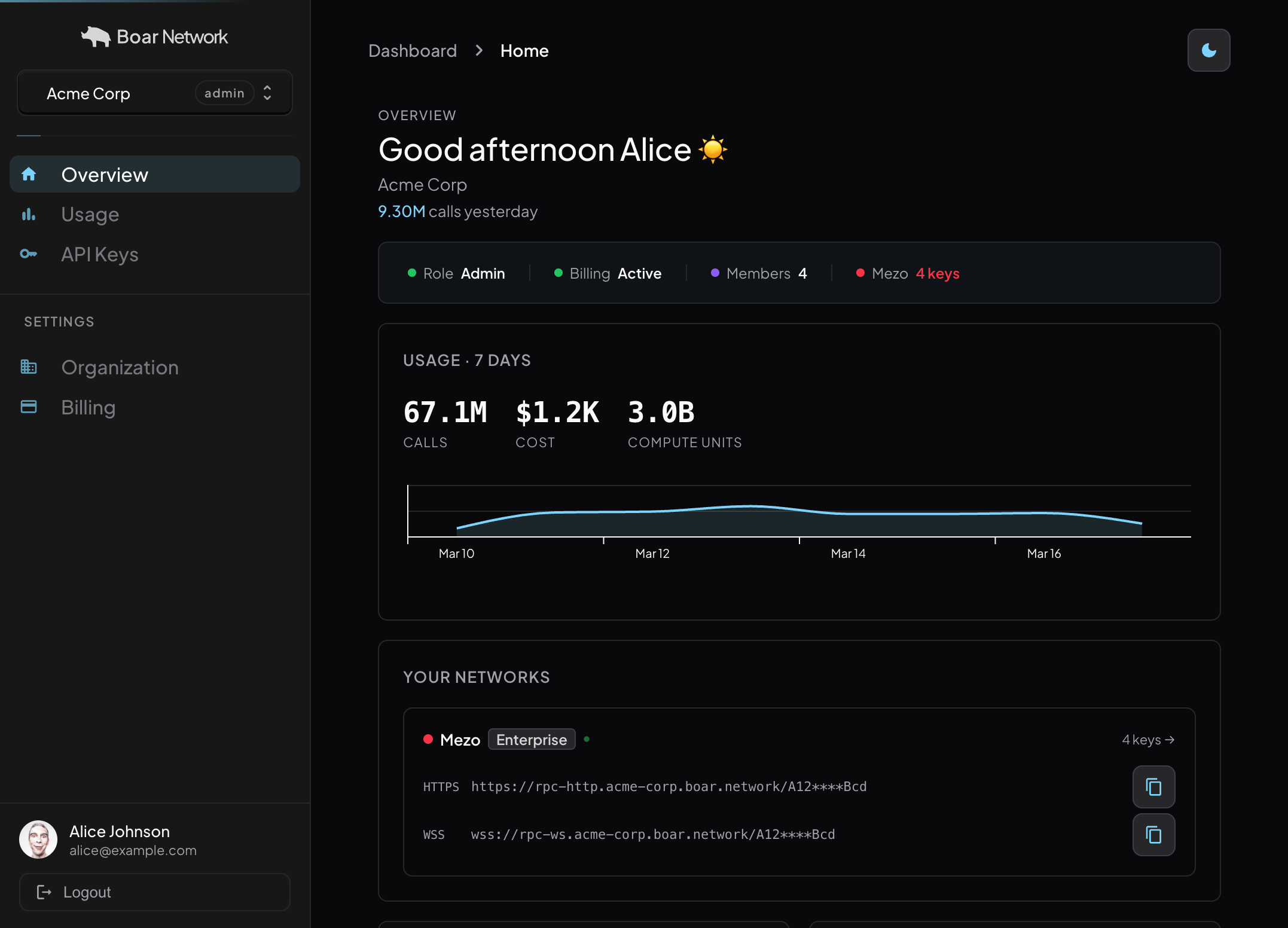 Create your account at dashboard.boar.network — no credit card required. You get 50M Compute Units every month at no cost.